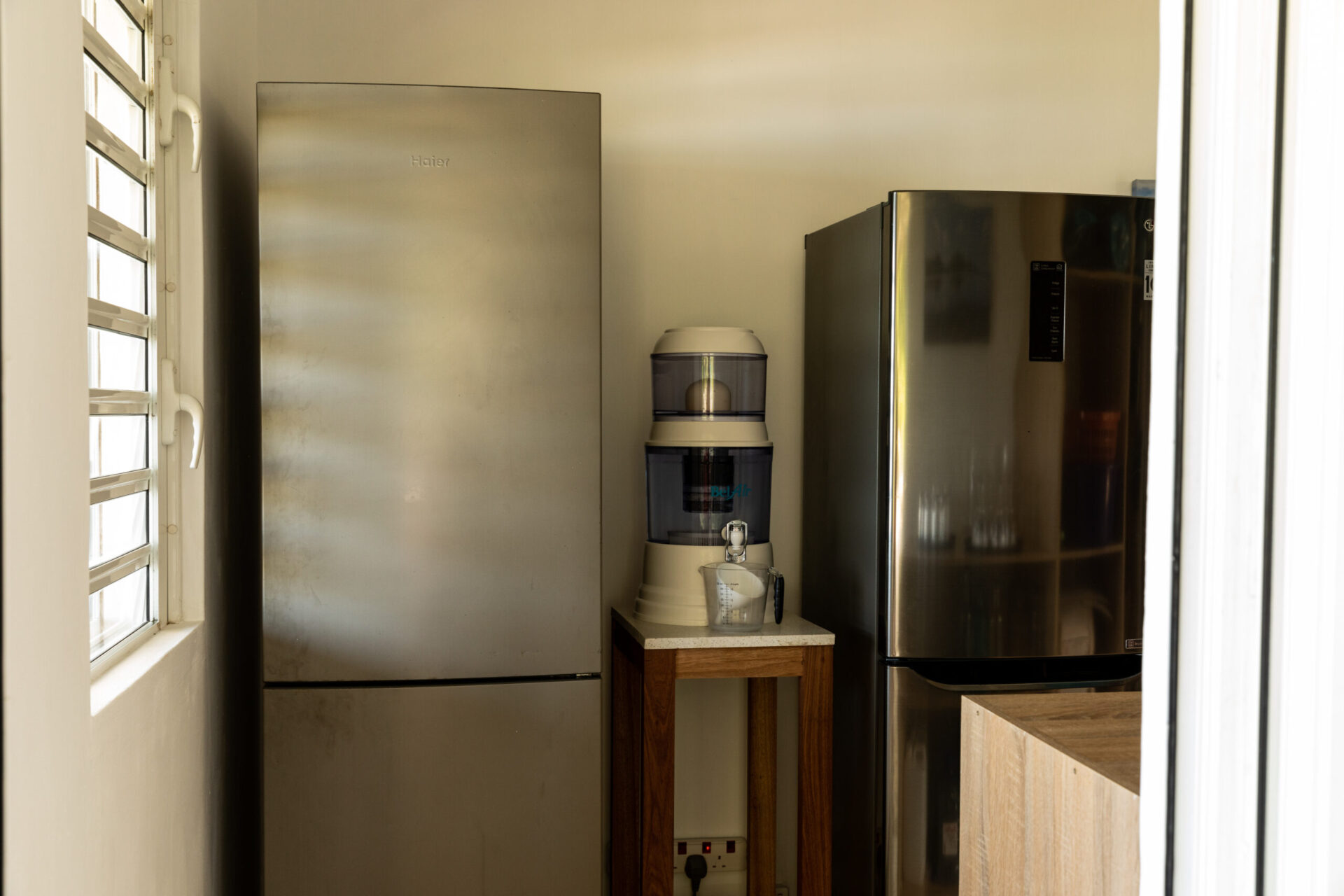 The kitchen is fully equipped with two fridges, hob, cyclone oven, grill, toaster, smoothie maker, juice squeezer, coffee plungers, water filter etc. There is a new clothes washing machine, iron and ironing board.